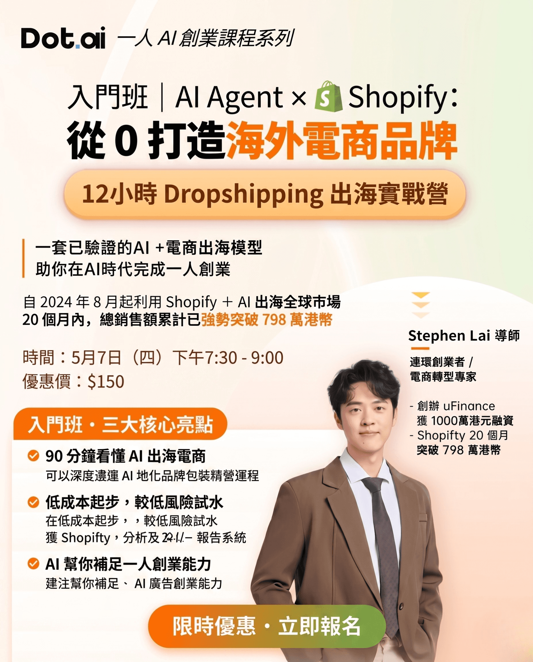 入門班|AI Agent × Shopify:從 0 打造海外品牌 Dropshipping 出海實戰營