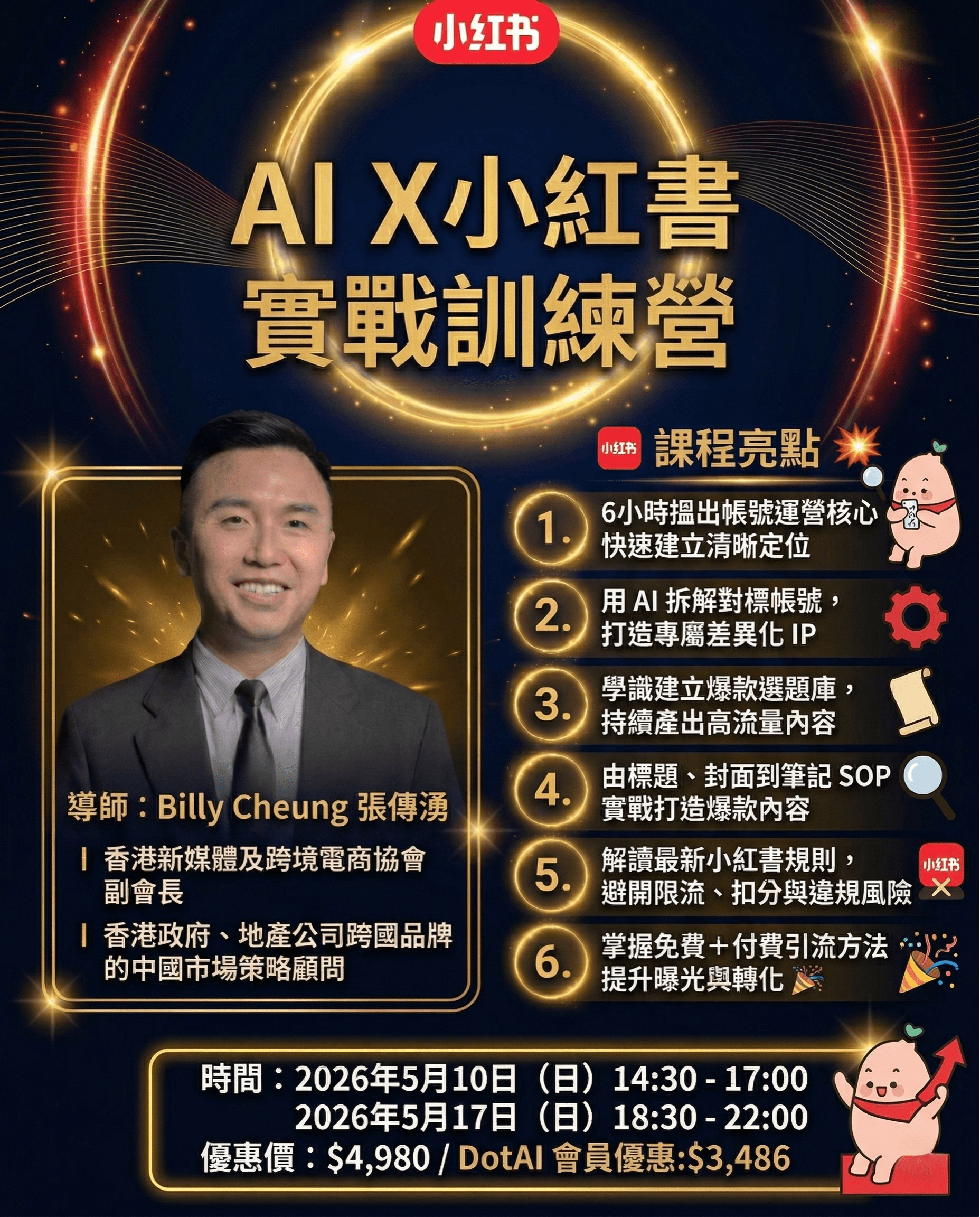 凡於體驗班當天報名指定主題班的首 20/30 名學員,即可獲得以下超值禮遇: ✅ 免費協助開設小紅書帳號 由零開始起步更輕鬆,幫你更快完成開號第一步。 🎁 加送小紅書實戰資源包 內含多份實用教材,例如: 1️⃣小紅書運營 SOP 2️⃣小紅書新手養號教程 3️⃣小紅書營銷指南 名額有限,送完即止。想趁機一次過搞定開號、養號與基礎營運準備,記得把握當天報名機會。