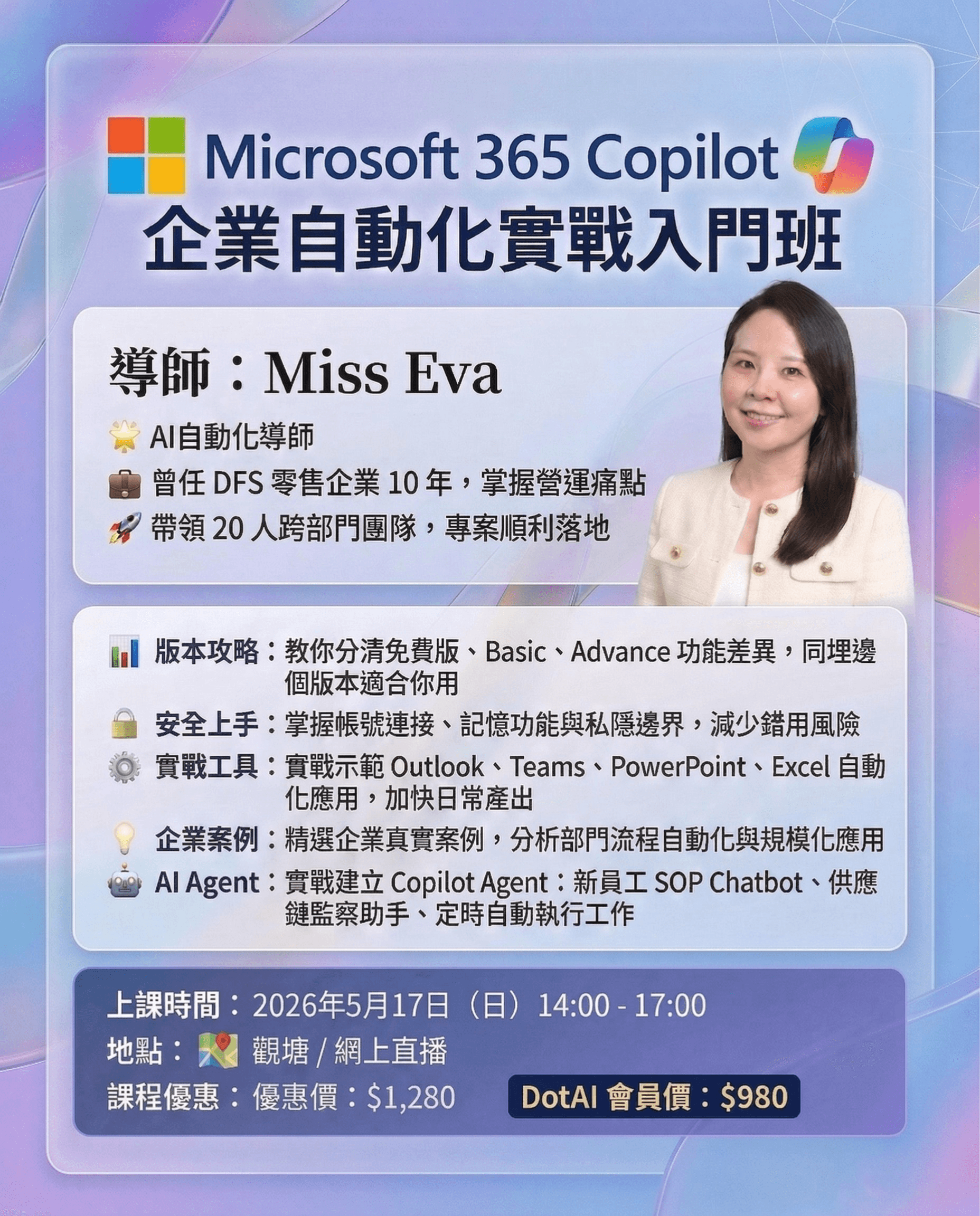 課堂會帶你了解 Copilot Agent 如何直接建於 Teams、Outlook、SharePoint 內