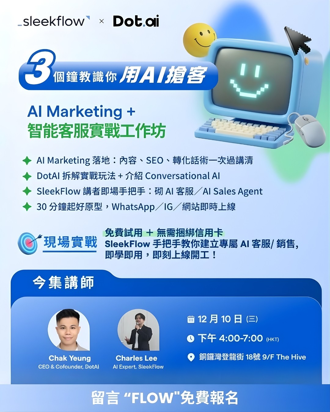 今次 SleekFlow 同 DotAI 合作 🫱🏻🫲🏼,你會學到: