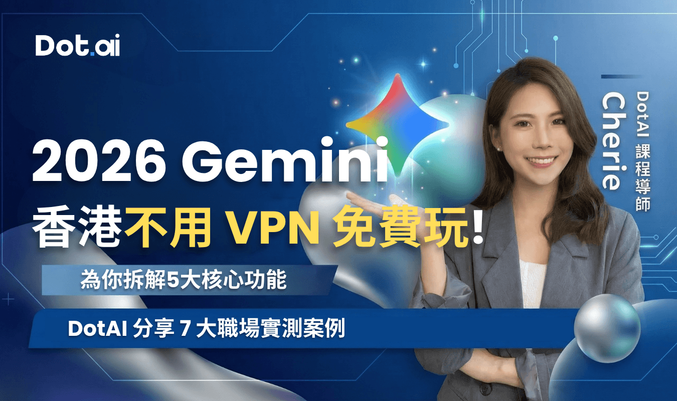 我們 DotAI 團隊觀察到,Google 於 2026 年正式宣佈逐步向香港用戶全面開放其旗艦生成式 AI 工具 Gemini。這標誌著香港用戶正式告別 VPN 與特定 Workspace 帳號的限制,只需登入個人 Google 帳戶即可直接存取最新技術。