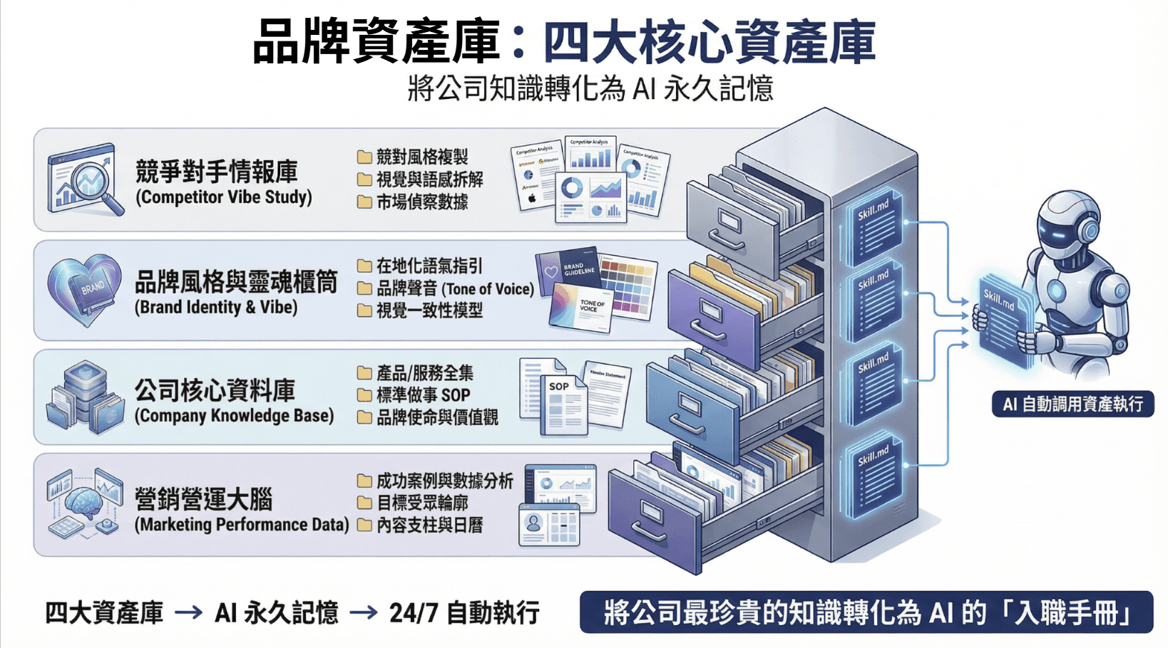 意義說明: 唯有將個人經驗與品牌標準系統化,讓 AI 成為企業內部的「內部 AI 小尖兵」與數位左右手,才能在瞬息萬變的市場中保持優勢並建立深層次的護城河。