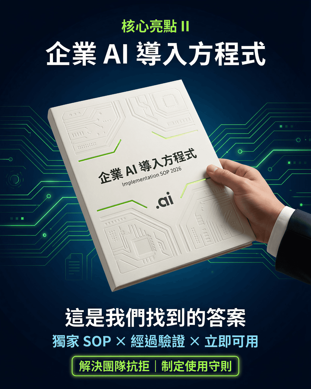 2026 必備 AI 落地心法:結合 50+ 間港企的實戰數據,發佈一套標準化的「企業導入 SOP」,教你如何解決「人的抗拒」並建立 AI 協作文化 。