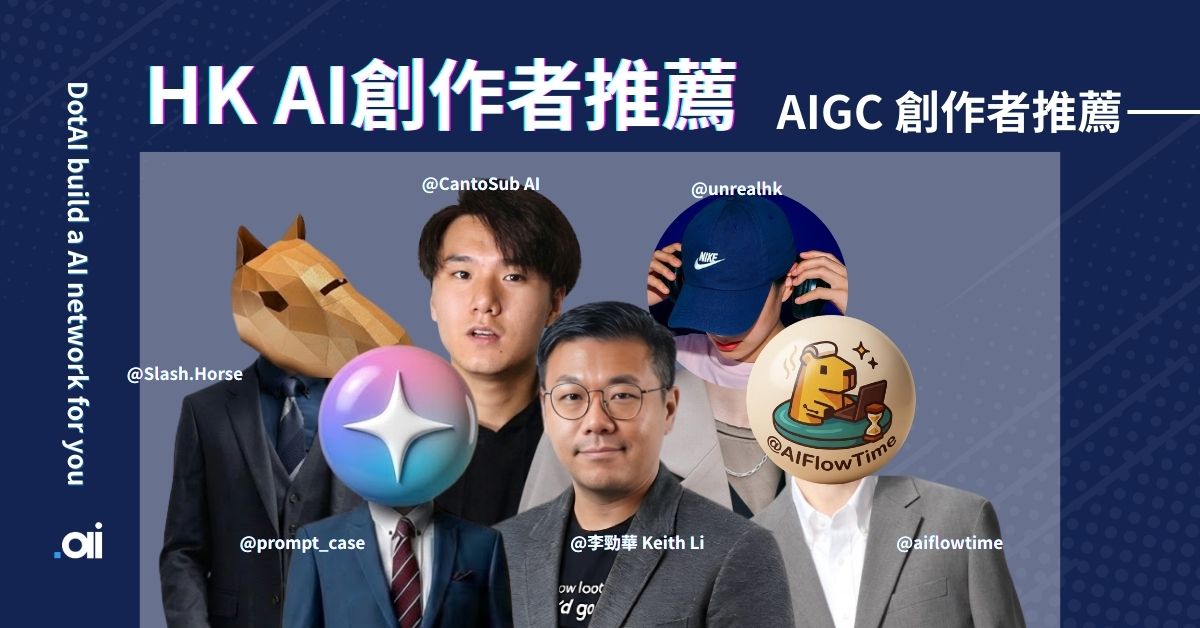 本文是 DotAI 團隊為大家梳理的 「香港 AI KOL 推薦名單」。我們精選了 6 位在工作流優化、知識教育、創意演繹領域具有標竿意義的kol。透過 DotAI 的分享,希望大家可以關注更多AIGC分享的賬號,在日常生活中也了解更多AI知識。