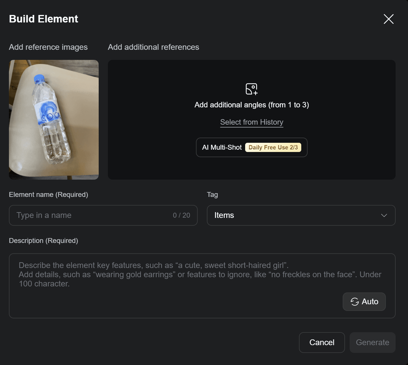 👉 黑科技實測:最強大的亮點在於內建的 AI Multi-Shot 功能!即使你僅有一張單一角度的照片(例如產品正面),AI 也能自動生成額外 1-3 個不同視角並一併儲存(設有每日免費生成限額)。這意味著 AI 能全方位 360 度理解你的素材結構,大幅提升生成畫面的立體感與連戲度!