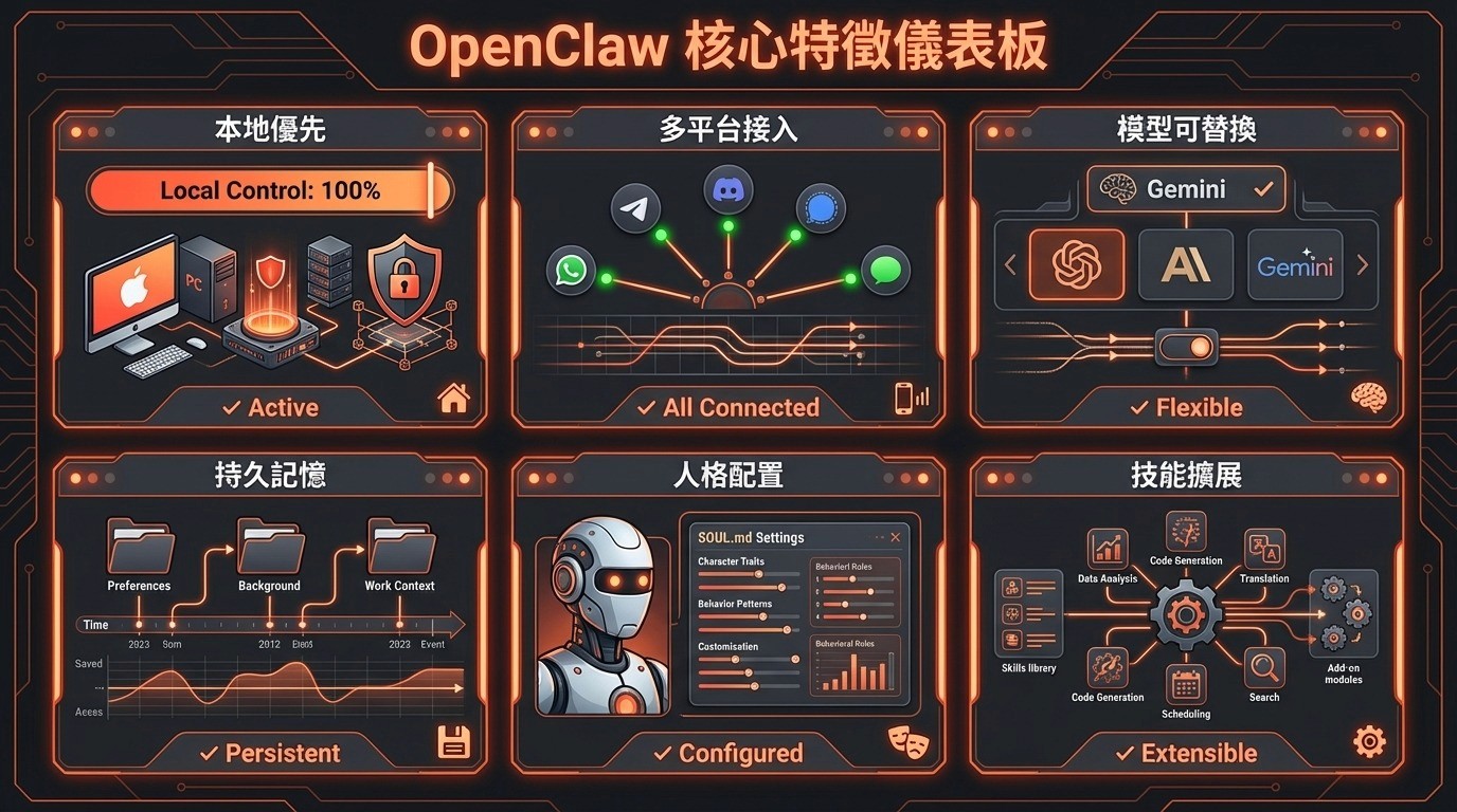 1.2 OpenClaw 的六個核心特徵