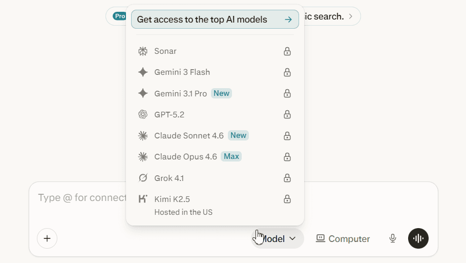 Q:Perplexity Computer 使用了哪些 AI 模型?
